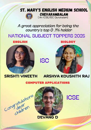 St. Mary’s English Medium School, magnificent in its own unique way, continues its journey towards excellence with the intercession of our Patroness Mother Mary. Guided by the footprints and principles of our Founder, Servant of God Fr. Thomas Poothathil, we uphold our motto “With light to the world”. Marian family, in unison with the values of the school, showcases hard work, humility and originality. With the grace of Almighty, the phenomenal record we made in the nip and tuck competition with the rest of the council peers in scholastic, arts and sports are highly appreciable and a proof of excellence.