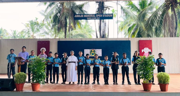Neal Santhosh, Arshya Koushithraj, Srishti Vineet were honoured along with the mentor Mrs. Shanila K for receiving Trophy, which they received from K-DISC session at Kottarakara, during the morning assembly in recognition of YIP 3.0 performance in the State Leavel.