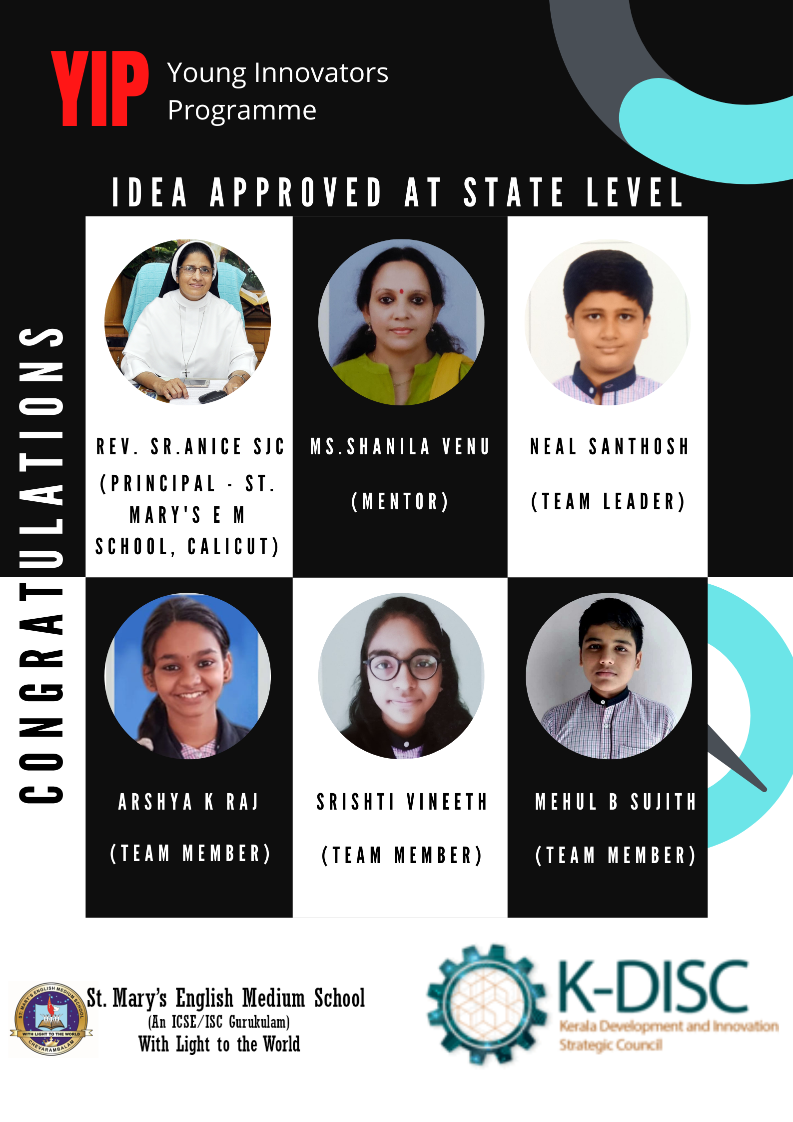 Ejin Paul Jobish- V, Neoval Joel P-V, Nived Manoj-V, Ivan Sajeesh Sebastian-VI, Angelo Sebastian-VIII, Kashinath P-X