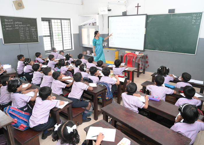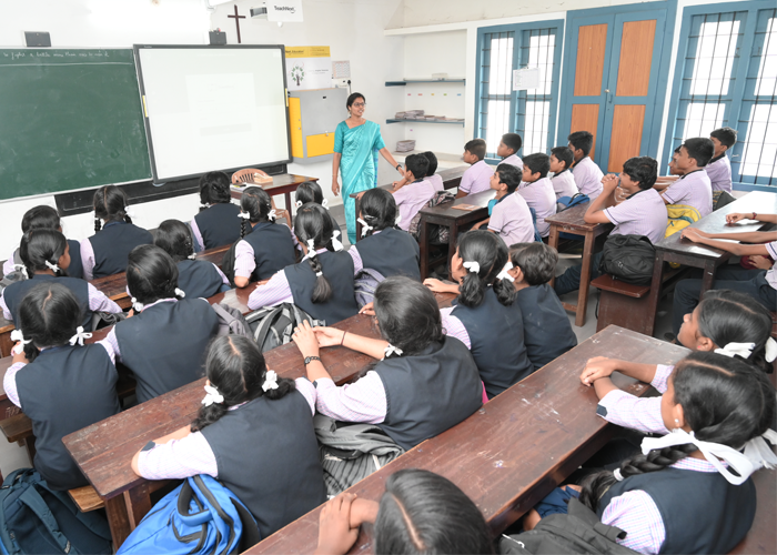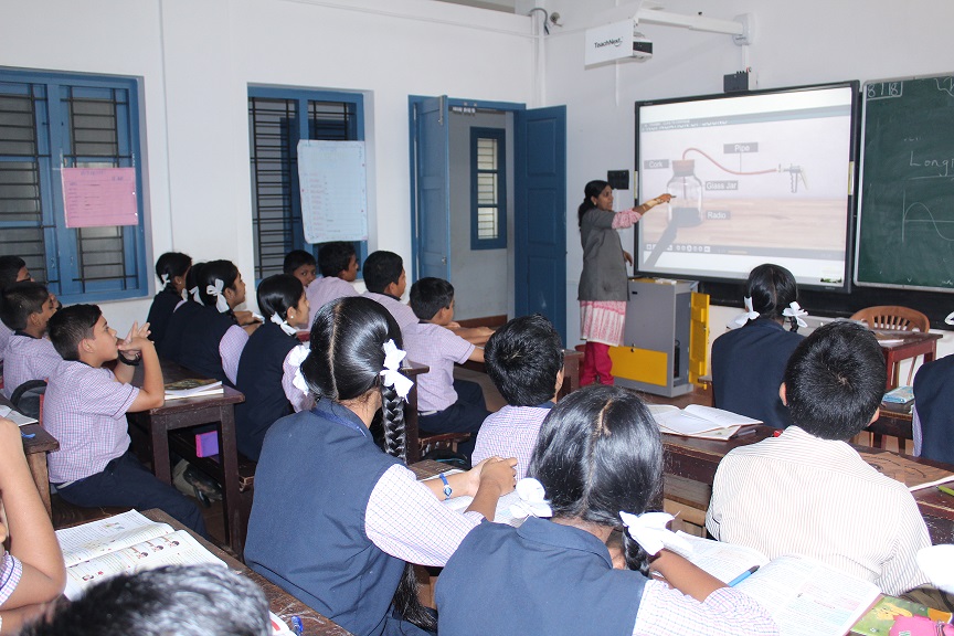 In accordance with the advancement in the education sector in the field of information technology, the school has implemented digital class rooms from the year 2011 on wards. This facility is implemented in collaboration with Teach Next Education, Hyderabad. The various videos, slide shows etc enable the students to visualize and learn the syllabus content in detail. It enhances the teaching methodology by providing much assistance in various forms. Teachers are well trained to use the ICT support for each lesson in each class room. They recognize the importance technology which plays a big roll in teaching tomorrows leaders